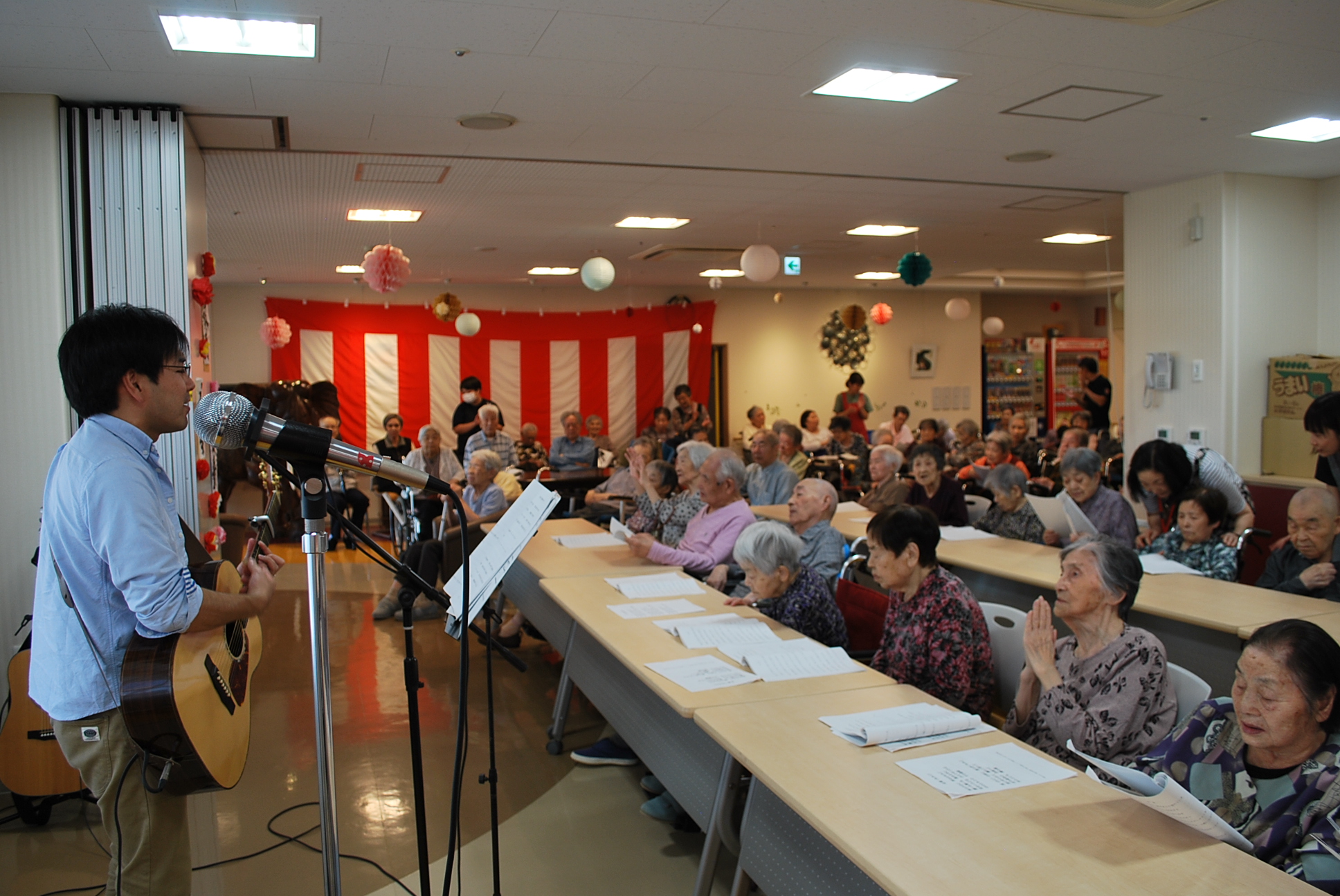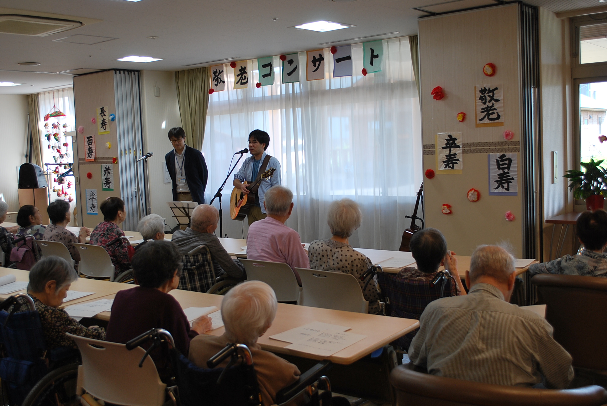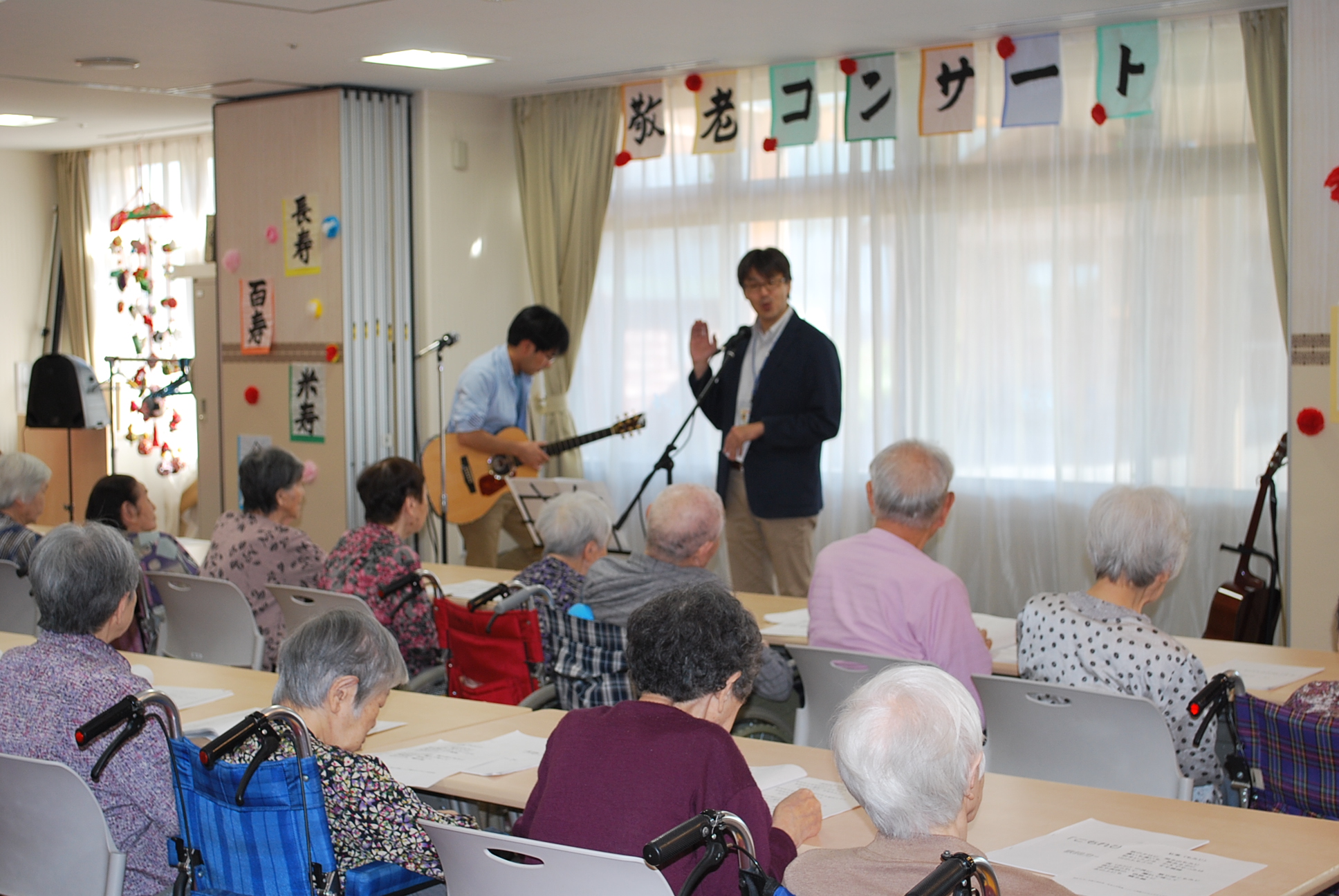 ひかりのでは毎月恒例の歌声喫茶と敬老会を合わせて「敬老コンサート」を9月19日に開催しました。
