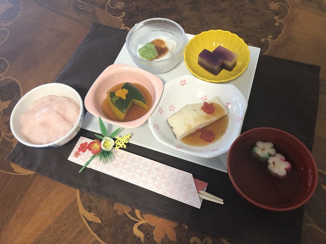 と題して、柔らかく、飲み込みやすい、見た目にも綺麗な行事食の提供に取り組んでいます!
