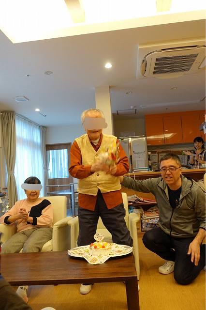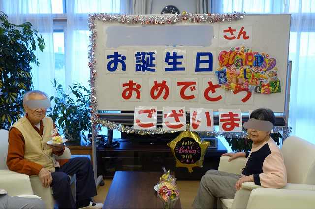 先日、ご夫婦で利用されているご主人様の誕生会があり、利用者様、職員でお祝いしました。