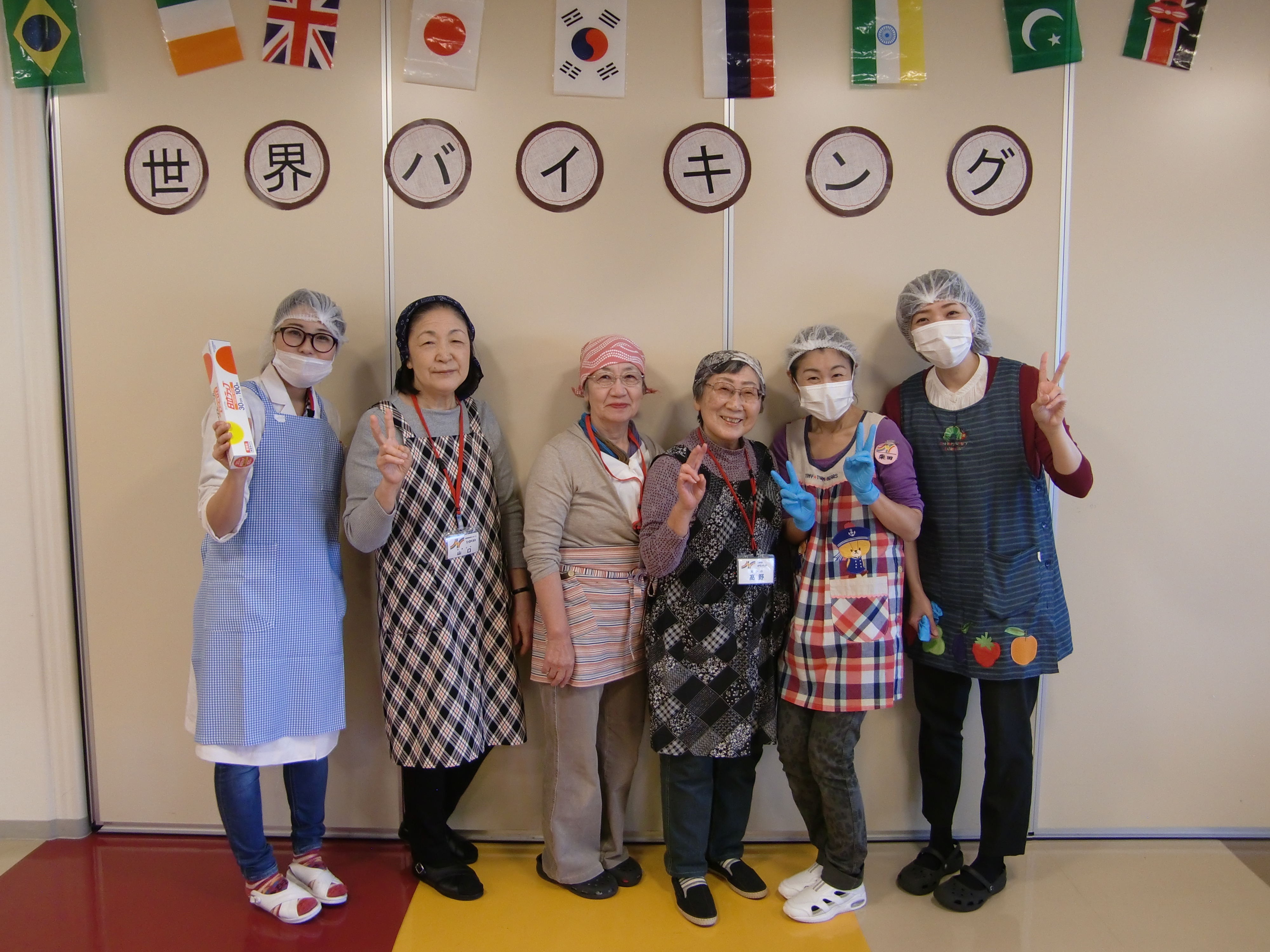今年は「世界バイキング」として世界各国の料理を栄養士・厨房職員と行事委員で企画して開催をしました。