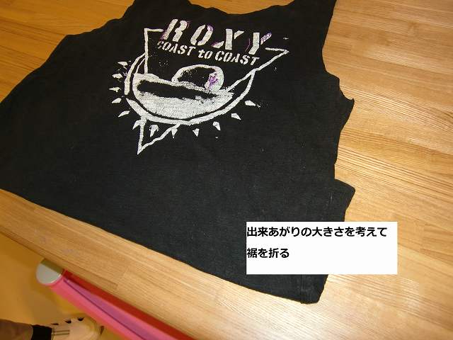 ①まずは、着なくなったTシャツ (お気に入りのデザインとか、子供が小さいころに着ていて思い出の物とか)を1枚用意してください。