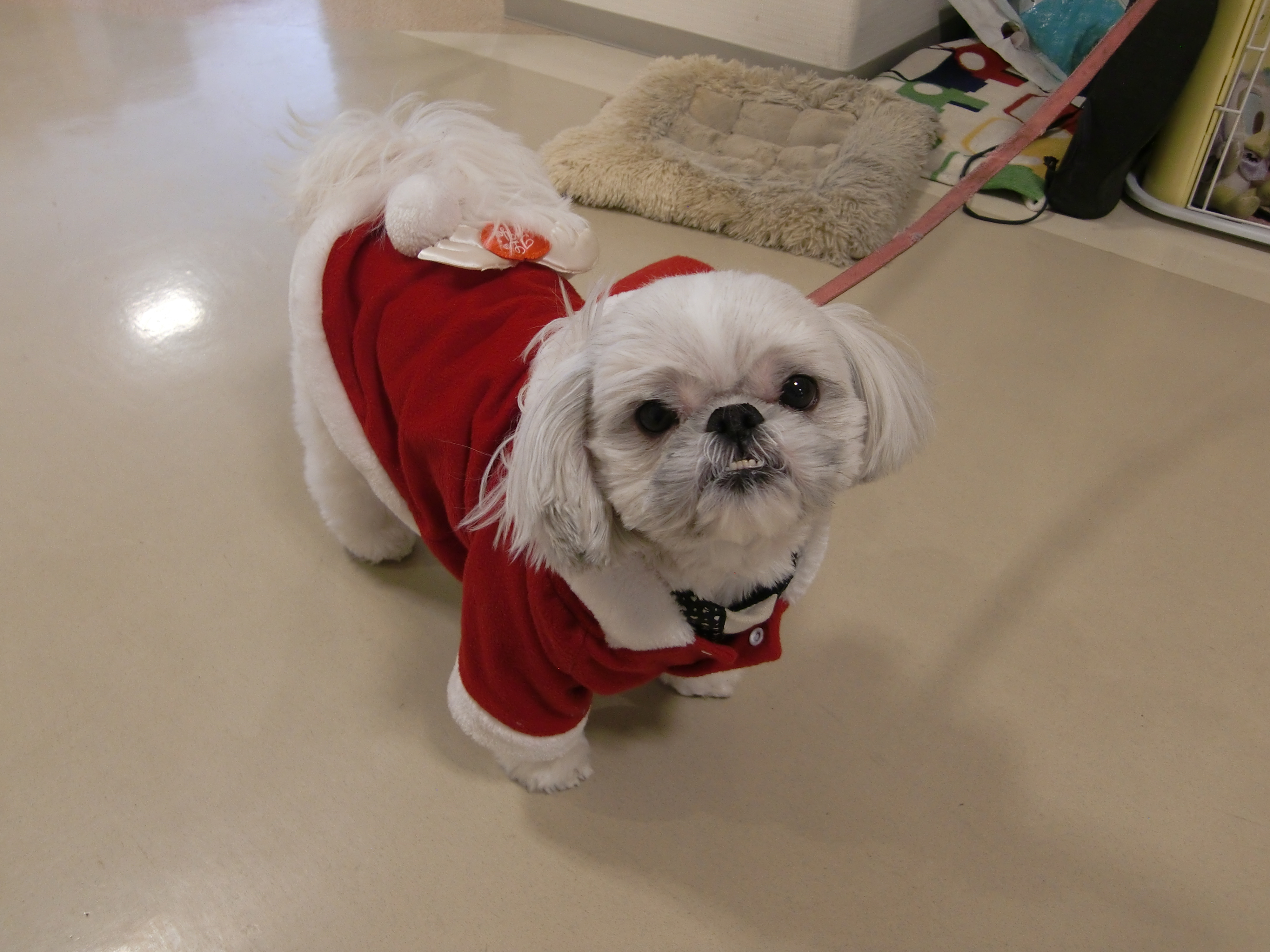 ひかりのに出勤している愛犬ロンも、クリスマスの衣装を着ての出勤です。