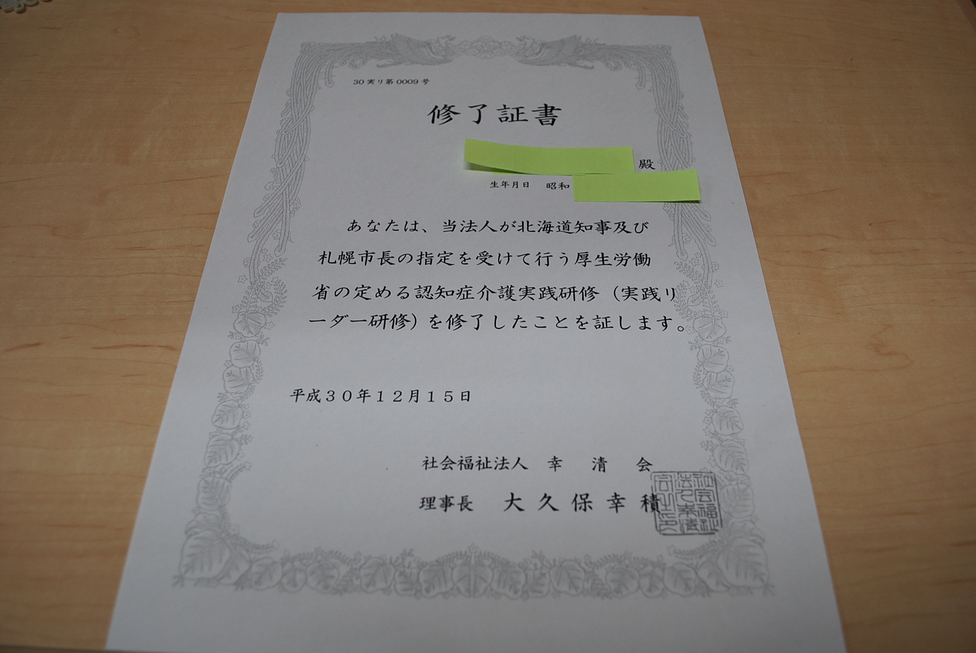 認知症介護実践リーダー研修修了