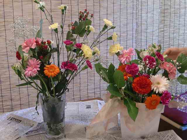 花瓶にはいけられず手にとり、ご自身の好きな花を選びブーケを作られていました!!