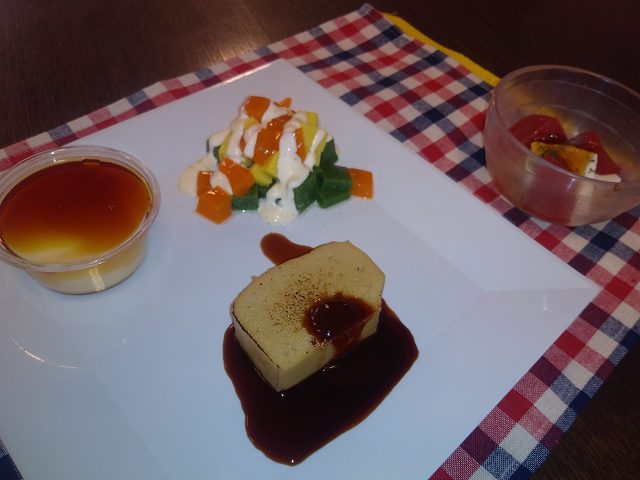 ハンバーグのテリーヌ、トマトゼリーと豆腐の和風カプレーゼ、