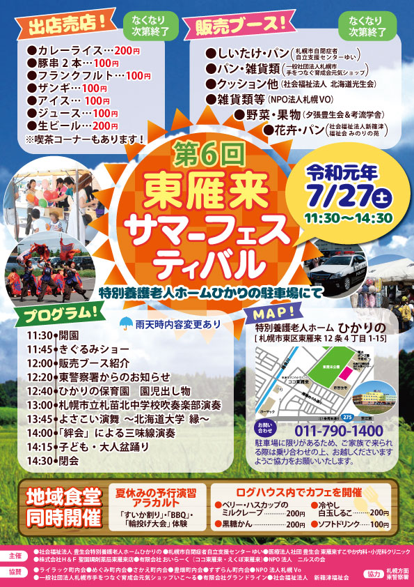 令和元年7月27日(土曜日)特養ひかりの駐車場で開催致します。