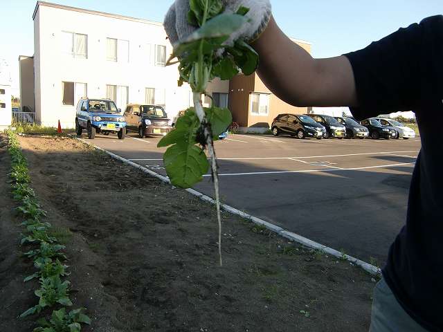 間引いた大根は、まだまだ小さいですが、土の中に残した大根が順調に育ってくれることを期待して10月の収穫まで待ちたいと思います。