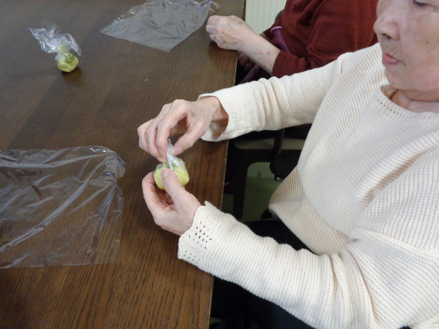 さて、ラップを広げると・・・サツマイモ茶巾の完成です♪♪