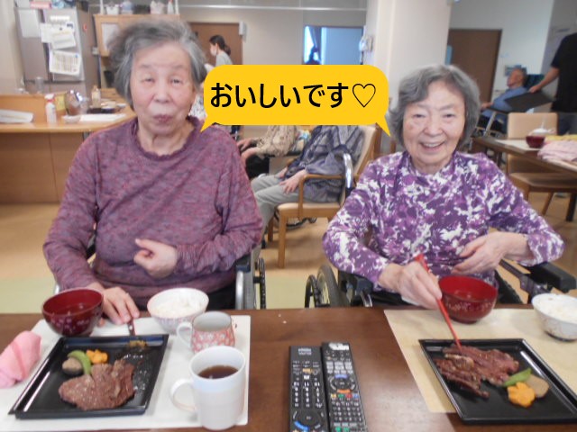 そんな折、あじさいの入居者様と食事について話をしていた時に「大きい肉が食べたいね~」と声が挙がり、「そうですね!こういう時は肉ですね!」と、あじさい・なでしこユニットでステーキレクを行う運びとなりました。