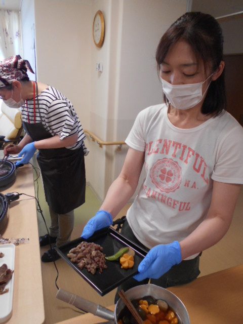ユニットスタッフ中心に準備を進め、ステーキ焼くなら手伝うよ!と、看護師、理学療法士 などなど、多くのスタッフが手伝いに駆けつけてくれました。