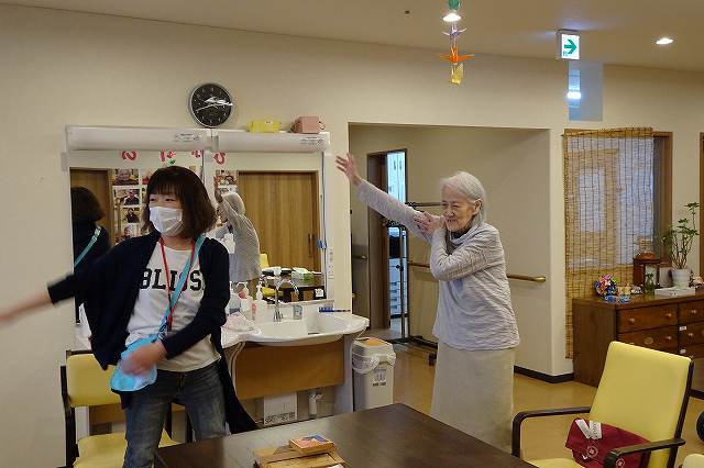 「私も立ってやろうかな」と仰って職員と一緒に体操されておりました。