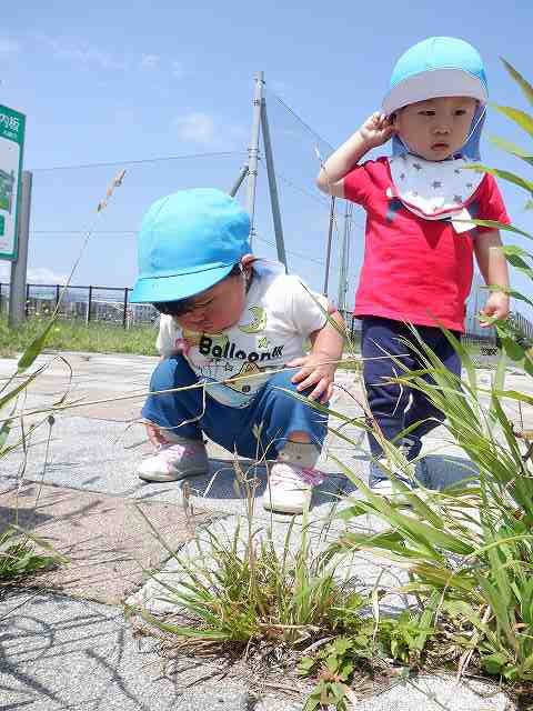 身近にある虫を見つけて、じーっとしゃがんで見たり、草花を摘んでお店屋さんをしてみたり...