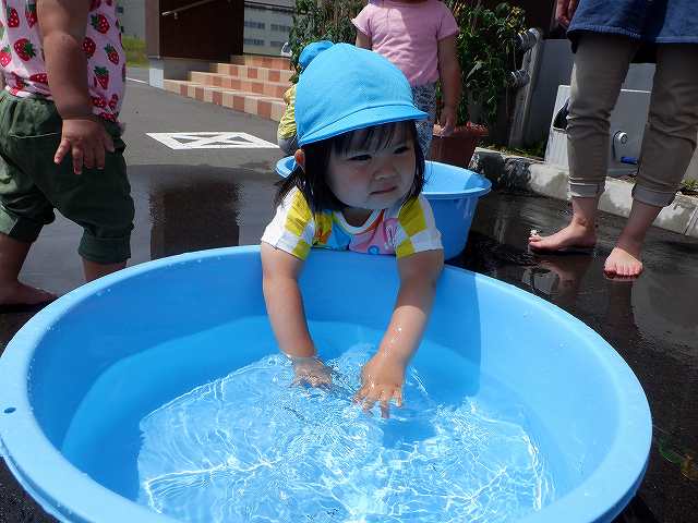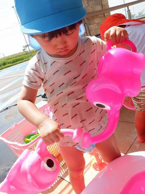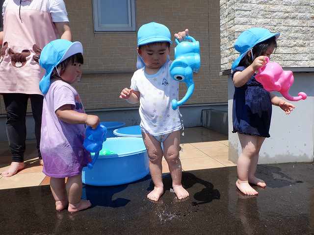 少し暑い日には、園舎前で水遊びも楽しんでいます