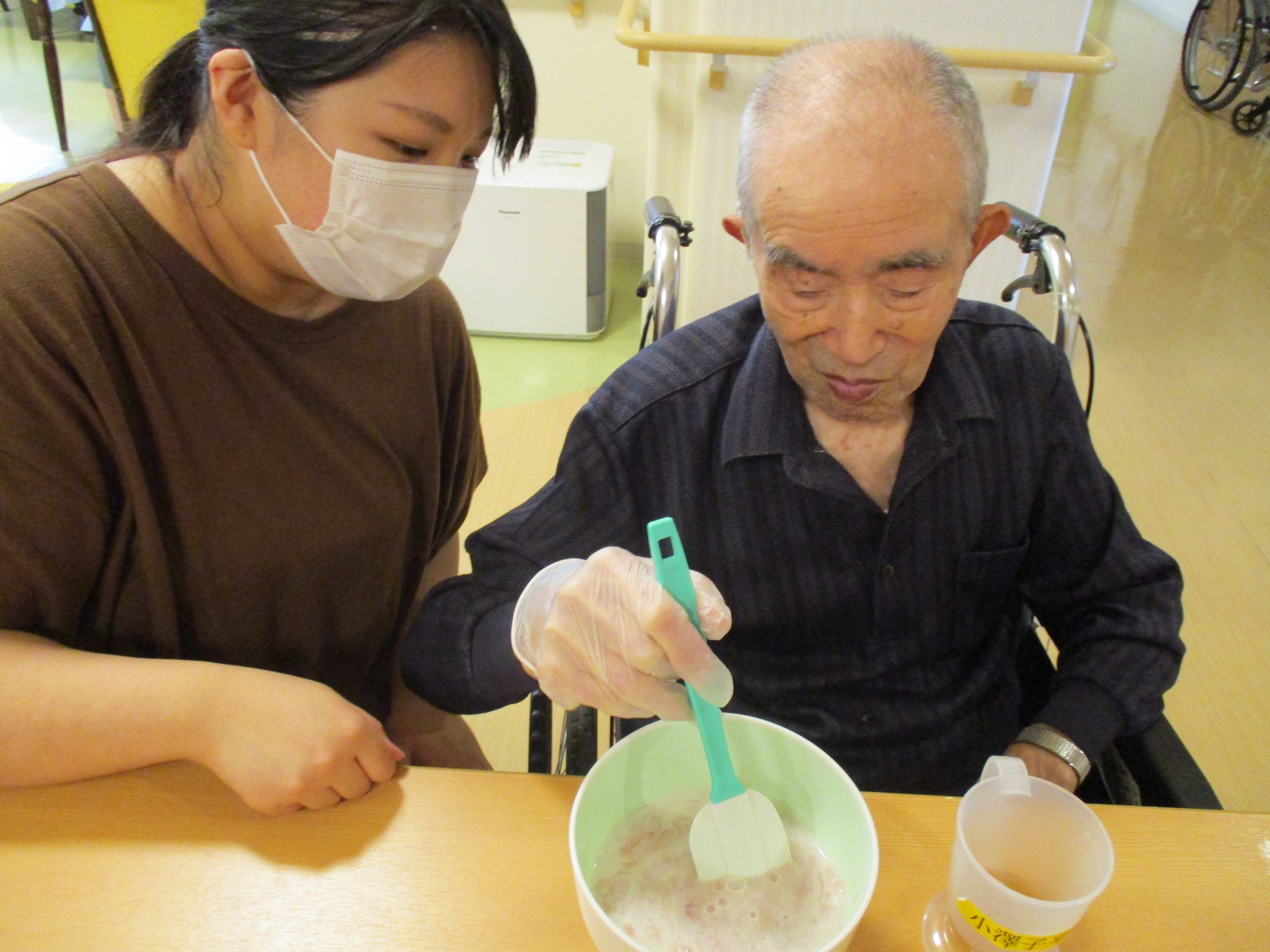 先日ユニットでは調理レク パンケーキ作り を行いました