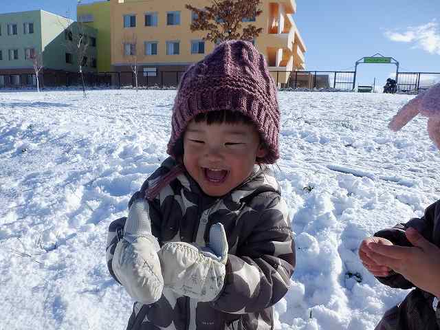 先生と協力して雪だるまを作ったり、雪玉でお店屋さんをしたりと