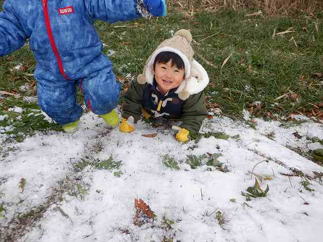 まだまだ少ない雪でも遊びの天才の子どもたち。