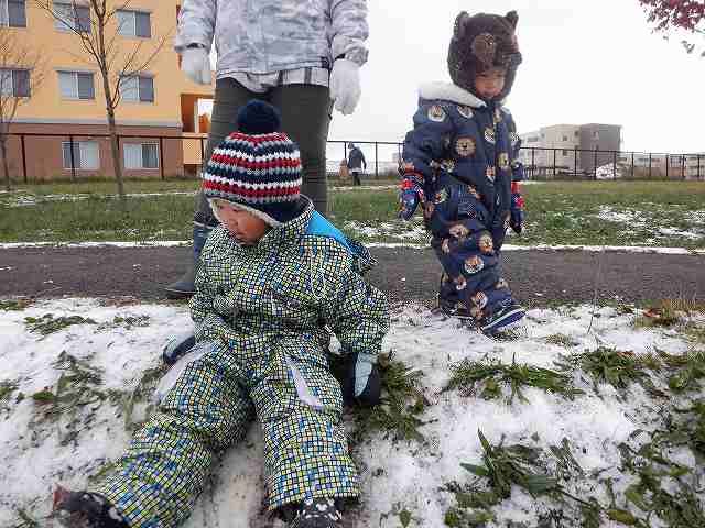 11月に初雪が降ると手袋、帽子、スノーコンビで準備万端。