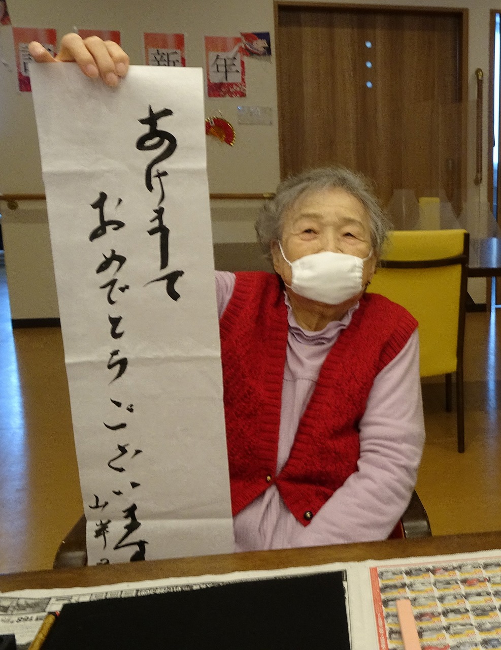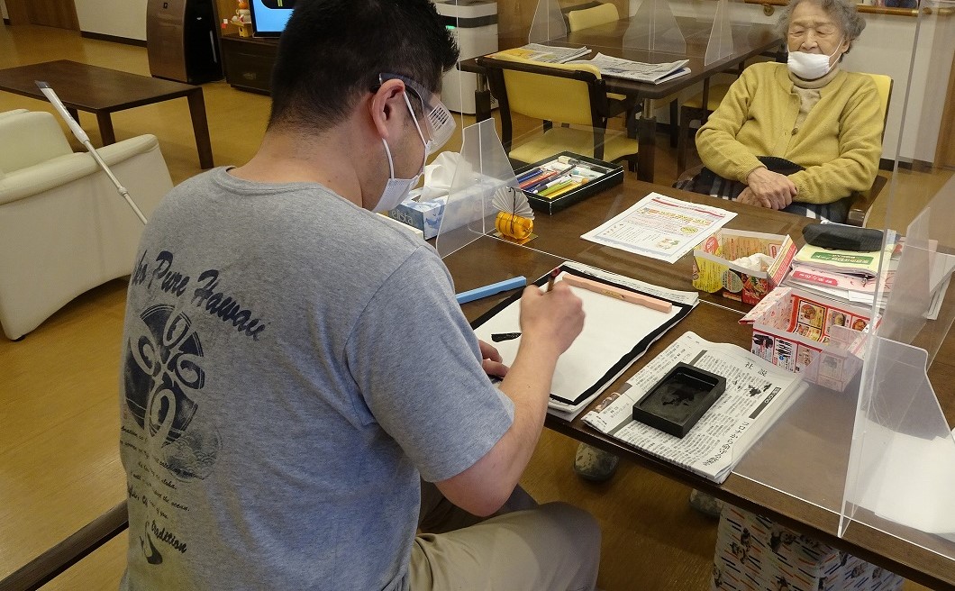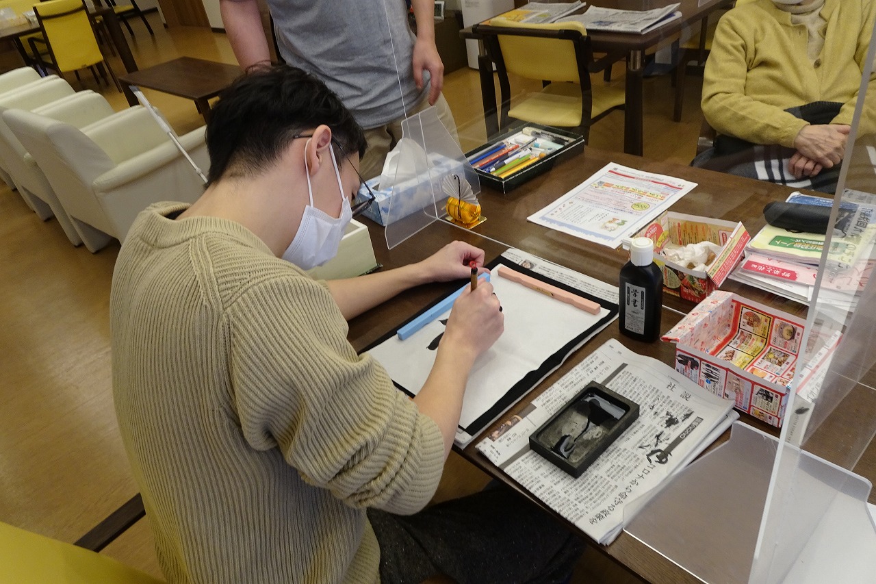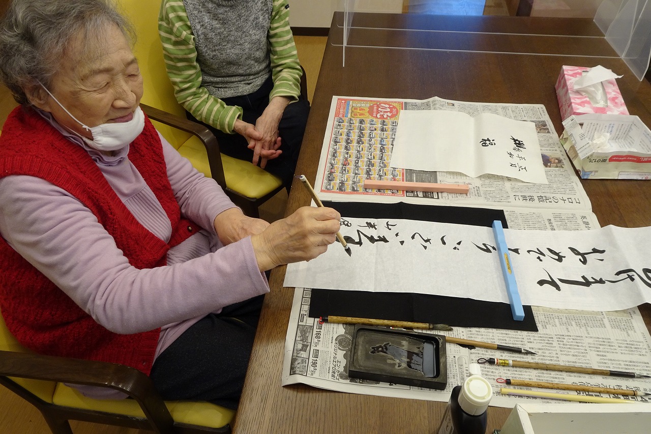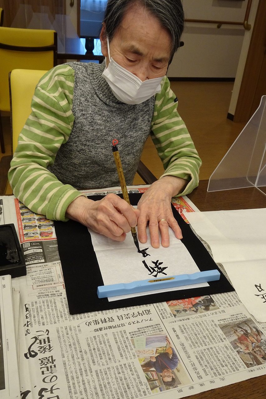 そんな中、小規模多機能型居宅介護事業所では、新年はご利用者様と一緒に書道をしました!
