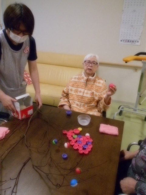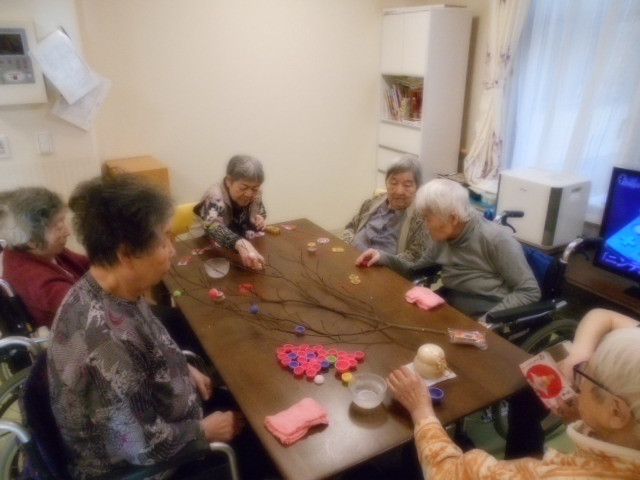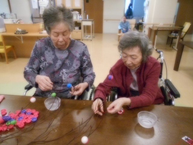 職員が作り方をお伝えすると、入居者様同士で「こうだよね~!」「きれいだね」と話されつけて下さいました。