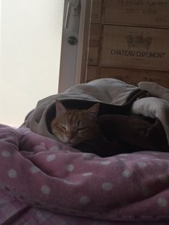 ♪猫はこたつで丸くなる♪歌の通り、我が家の猫は布団を独り占めしていました