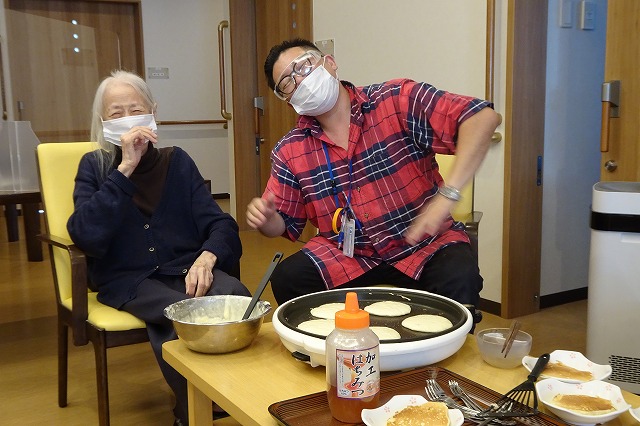 こちらは、ホットケーキ作り。