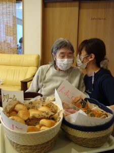 好きなパンを選んでもらおうとカゴに入ったパンを持って皆様の所へ♪