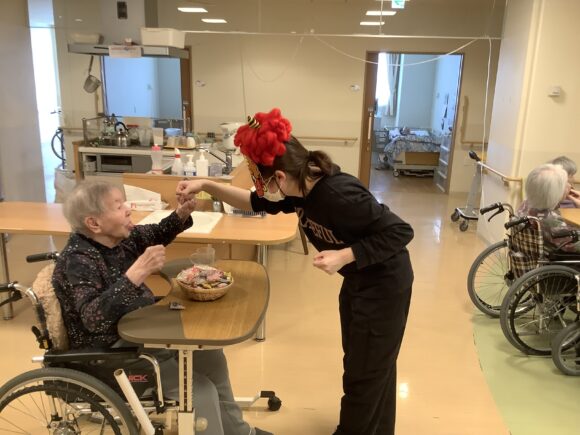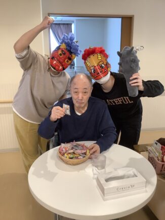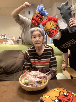 すみれそう、さくらそうユニットでは一日早い、2月2日に豆まきを行いました。