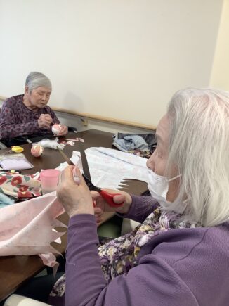 もちろんあじさいなでしこユニットでも『鬼は外!福は内!』としっかり豆まきは行いましたが、今回は3/3にひなまつりに向けて、かわいい装飾づくりの紹介をしていきたいと思います!!